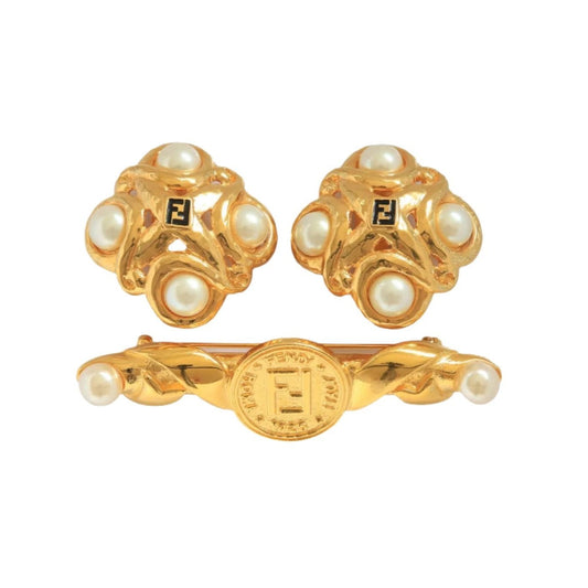 Vintage Fendi Clip-On Earrings and Brooch Set